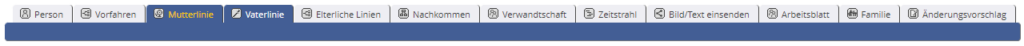 Ausgehend von der ausgewählten Person wird dessen Mutter und alle weiteren Mütter in direkter Linie samt deren Familien dargestellt.